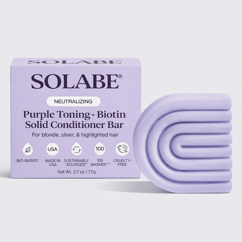 Condicionador em barra com efeito matizante para cabelos tingidos e grisalhos.
